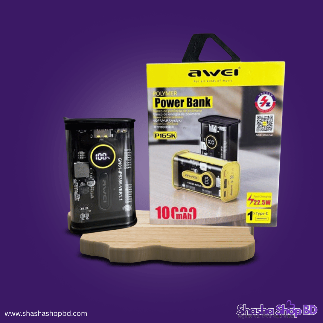 পাওয়ার ব্যাংকের দুনিয়ায় আভিজাত্য এবং প্রযুক্তির সমন্বয় নিয়ে এলো Shasha Shop BD। আমাদের নতুন কালেকশনে যুক্ত হয়েছে Awei P165K 22.5W Fast Charging Power Bank। এর ইউনিক ট্রান্সপারেন্ট (স্বচ্ছ) ডিজাইন আপনাকে দেবে এক ফিউচারিস্টিক ফিল, যা বর্তমানে গ্যাজেট প্রেমীদের প্রথম পছন্দ। ছোট সাইজ কিন্তু শক্তিশালী পারফরম্যান্সের কারণে এটি আপনার ভ্রমণের সেরা সঙ্গী হতে পারে।