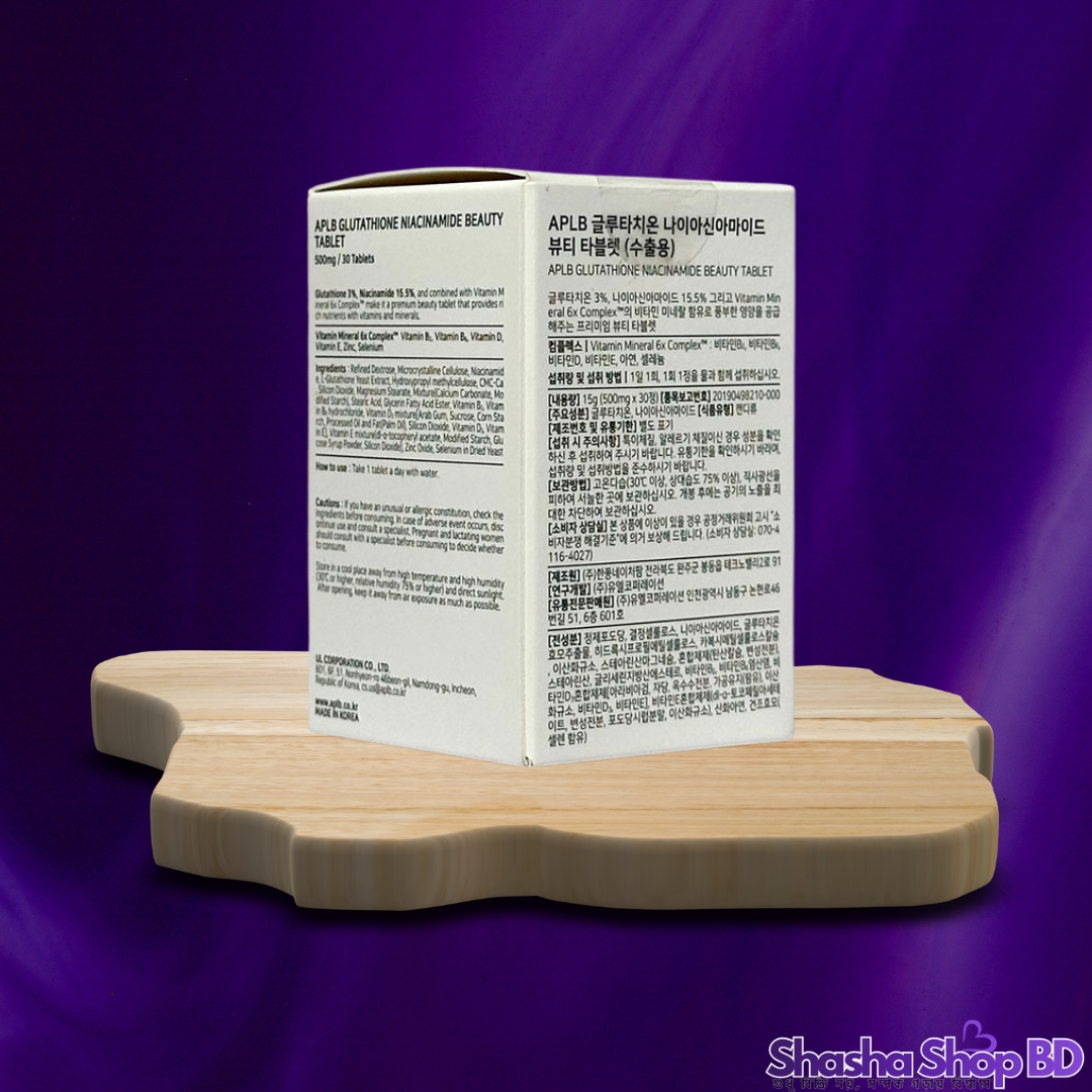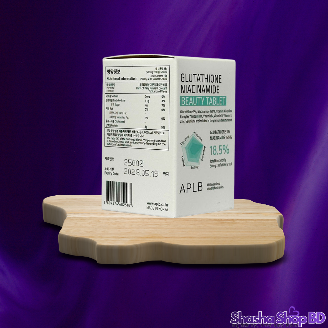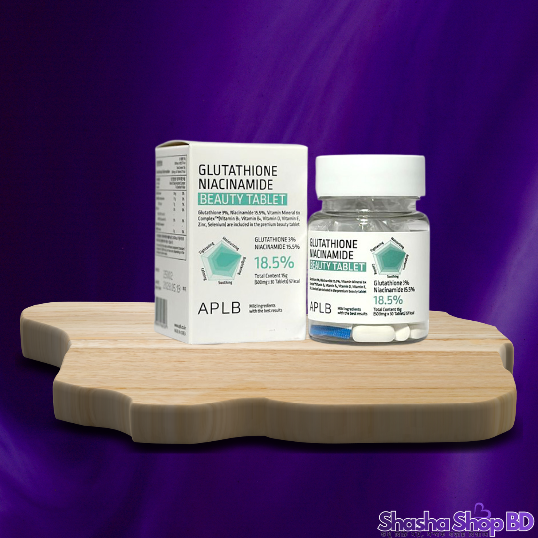 ✨ APLB Glutathione Niacinamide Beauty Tablet, 30 pcs– ভেতর থেকে পান উজ্জ্বল ও দাগহীন ত্বক!