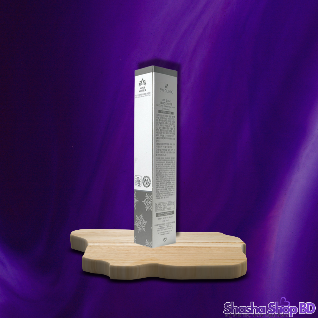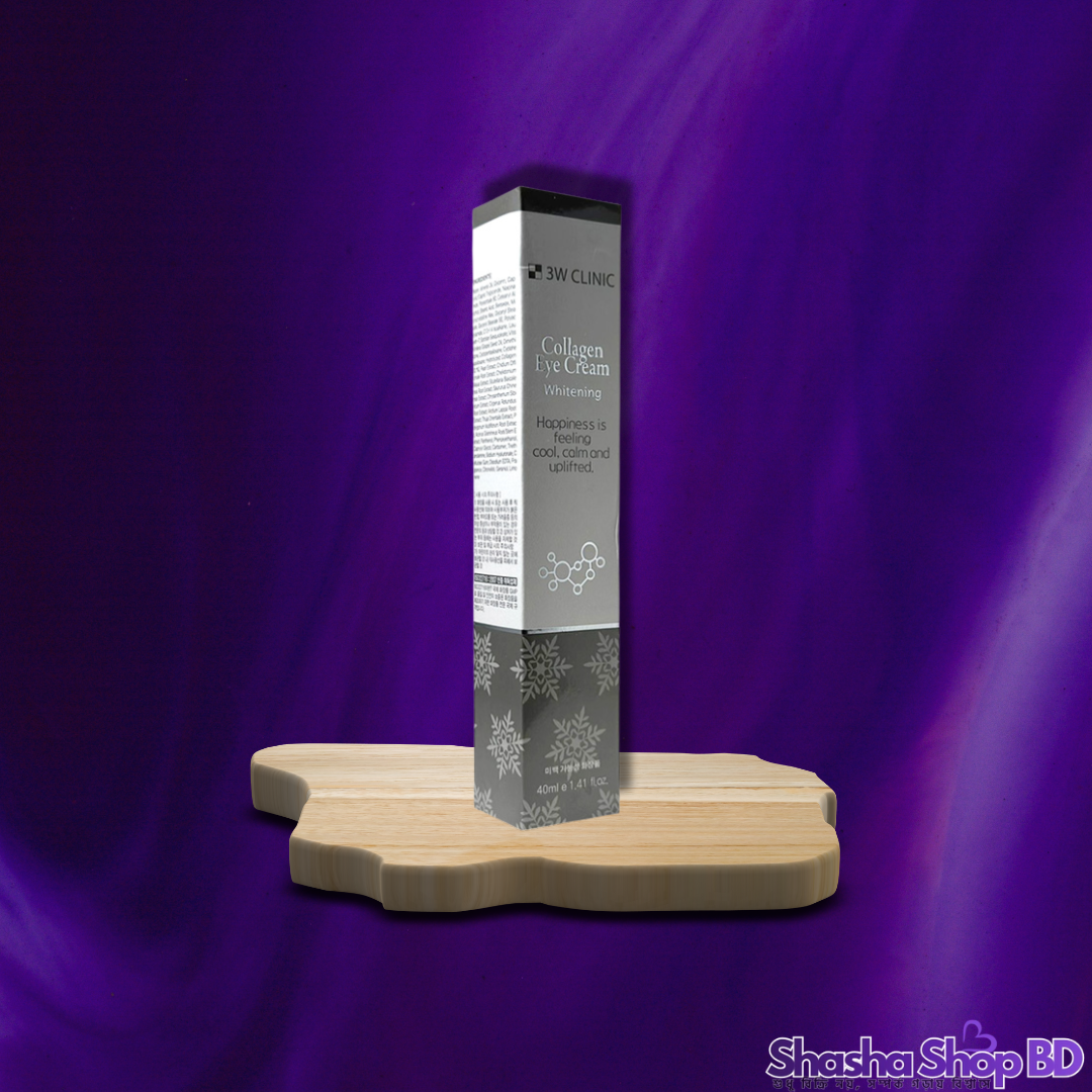 চোখের নিচের চামড়া কুঁচকে যাওয়া বা বলিরেখা (Fine Lines) চেহারায় বয়সের ছাপ ফেলে দেয়। আপনার চোখের চারপাশের ত্বকের ইলাস্টিসিটি ফিরিয়ে আনতে এবং ত্বককে টানটান রাখতে Shasha Shop BD নিয়ে এলো দক্ষিণ কোরিয়ার বিখ্যাত ব্র্যান্ড 3W Clinic-এর Collagen Eye Cream।