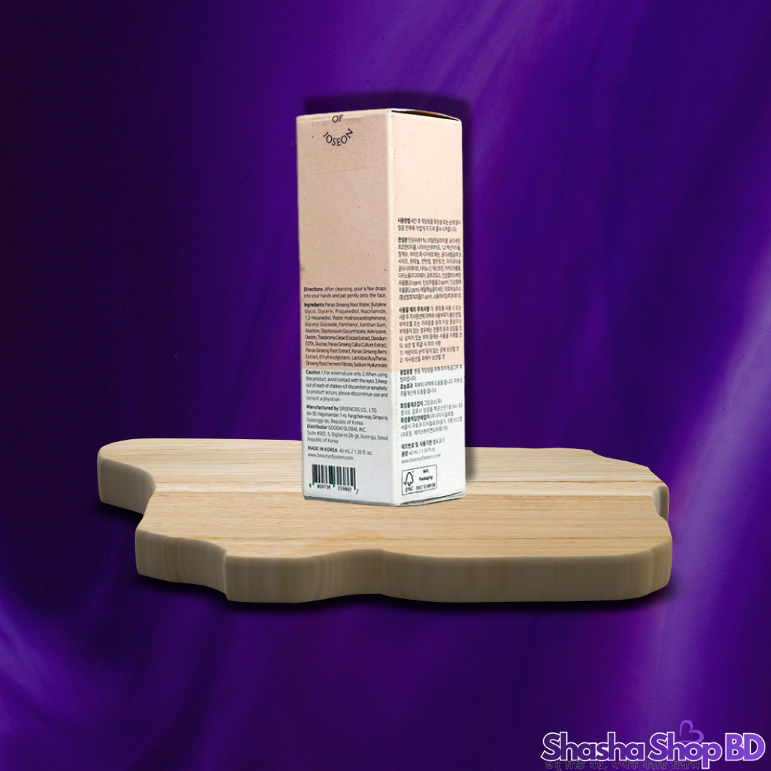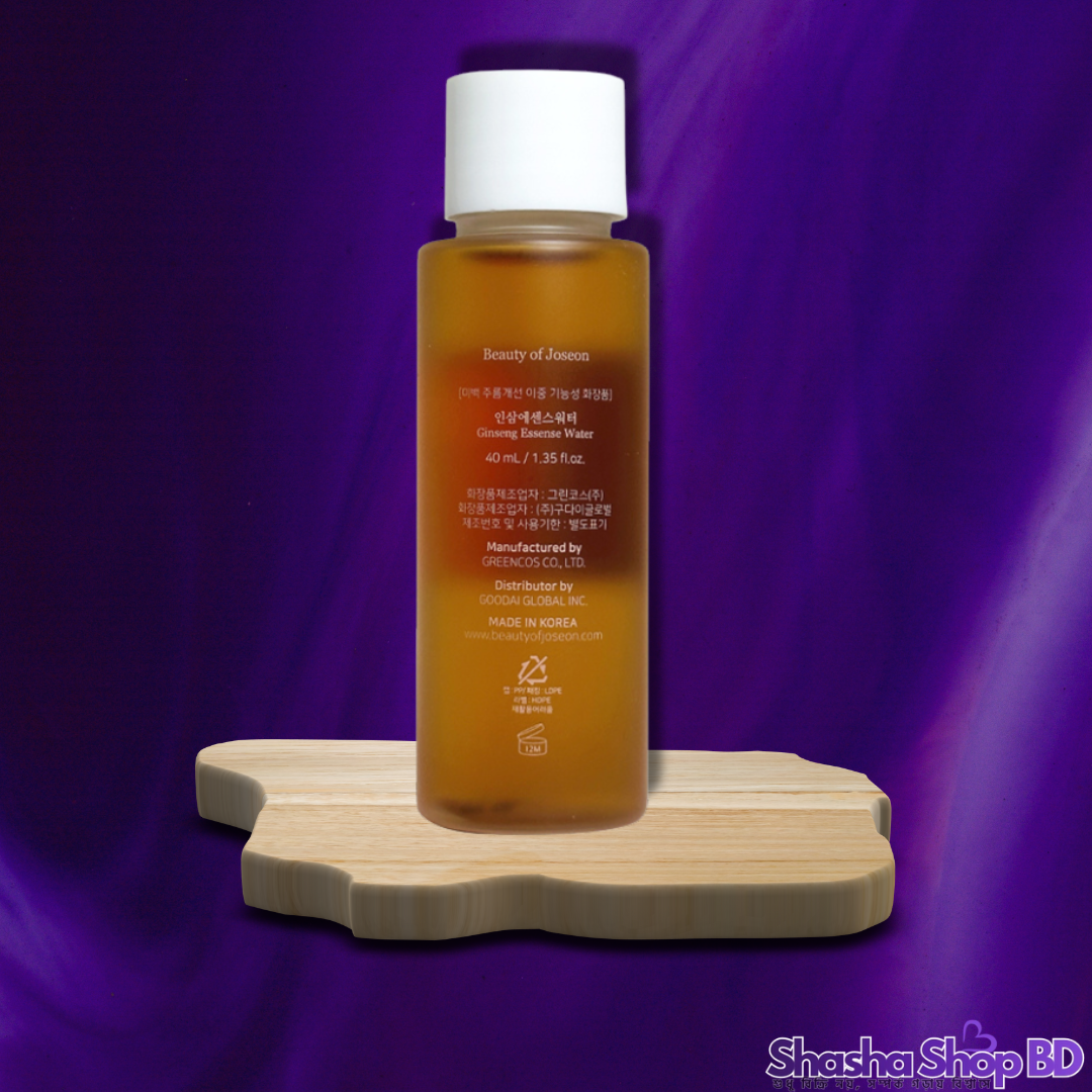 ✨ আপনার ত্বককে জিনসেং-এর পুষ্টিতে সতেজ ও উজ্জ্বল করতে আজই Shasha Shop BD থেকে সংগ্রহ করুন ১০০% অরিজিনাল Beauty of Joseon Ginseng Essence Water (40ml)