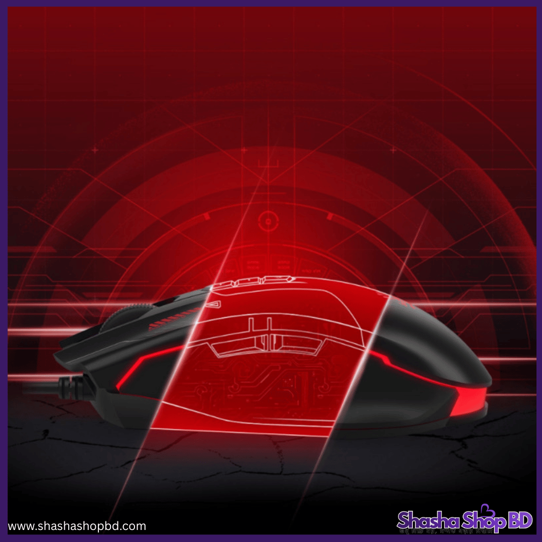 Ergonomic Grip: মাউসের বডি এমনভাবে তৈরি করা হয়েছে যা দীর্ঘক্ষণ গেম খেললেও হাতে কোনো ক্লান্তি আনে না এবং হাতের তালুর সাথে চমৎকারভাবে ফিট হয়।