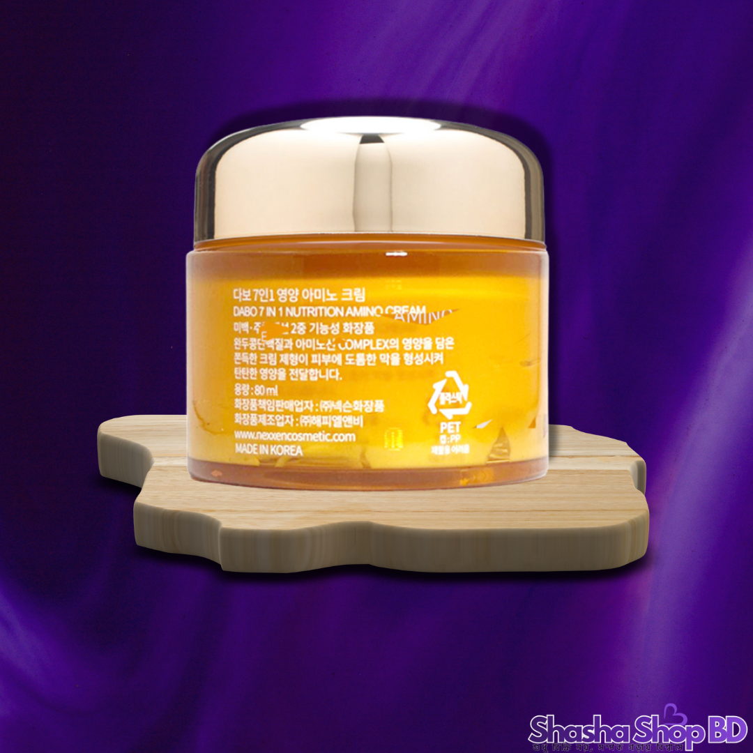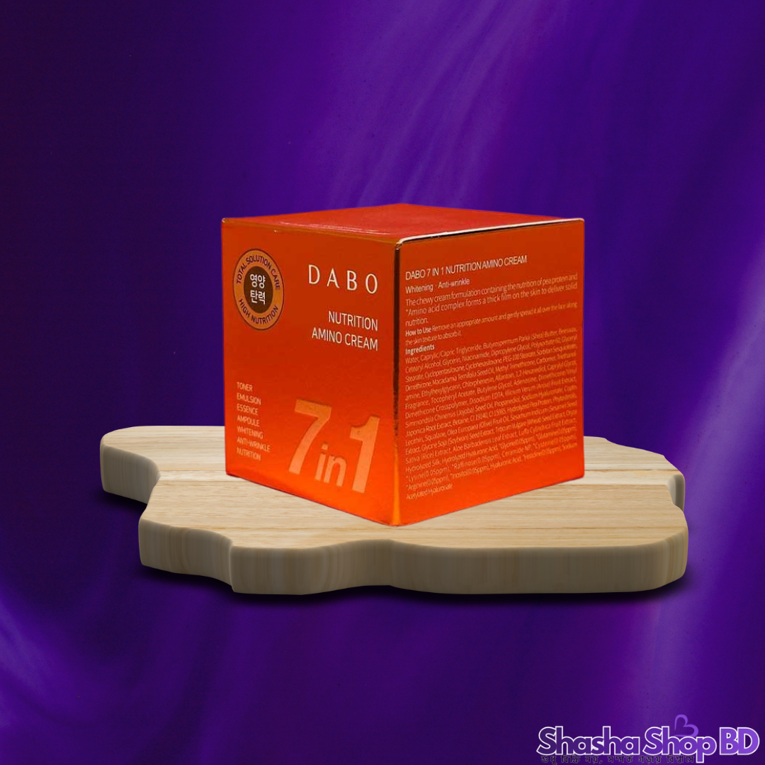 ত্বককে প্রয়োজনীয় পুষ্টি দিয়ে সজীব ও উজ্জ্বল রাখতে Shasha Shop BD নিয়ে এলো দক্ষিণ কোরিয়ার DABO ব্র্যান্ডের অল-ইন-ওয়ান 7 in 1 Nutrition Amino Cream। উচ্চমাত্রার অ্যামিনো অ্যাসিড সমৃদ্ধ এই ক্রিমটি ত্বকের ভেতর থেকে যত্ন নেয় এবং মাত্র একটি প্রোডাক্টেই পূর্ণাঙ্গ স্কিনকেয়ারের সুবিধা দেয়।