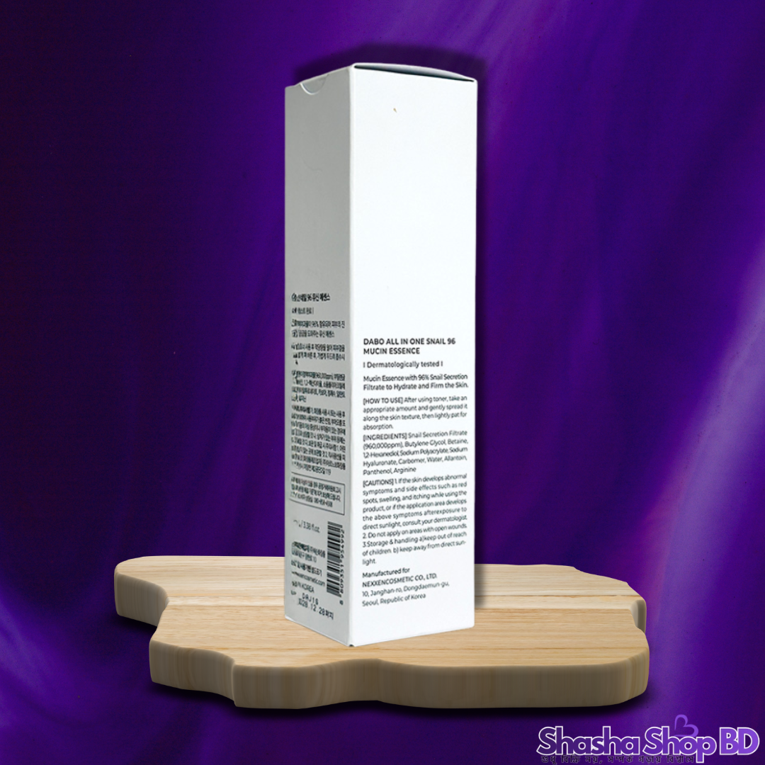 ✨ আপনার ত্বককে মসৃণ, দাগমুক্ত এবং গ্লোয়িং করতে আজই Shasha Shop BD থেকে অর্ডার করুন ১০০% অরিজিনাল Dabo All In One Snail 96 Mucin Essence (100ml)