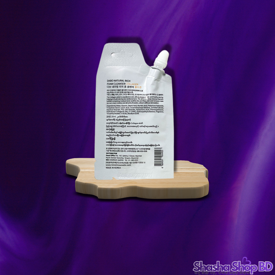 Dabo Natural Rich Foam Cleanser – Collagen (20ml) (Elasticity & Deep Cleansing – ত্বক পরিষ্কারের সাথে পান টানটান ও তরুণ লুক!)