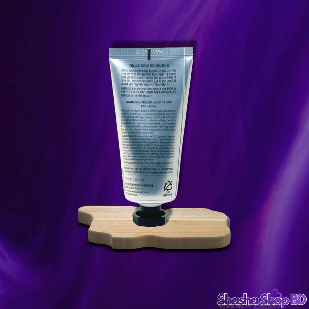✨ আপনার হাতের ত্বককে মখমলের মতো কোমল এবং তরুণ রাখতে আজই Shasha Shop BD থেকে অর্ডার করুন ১০০% অরিজিনাল Dabo Skin Relief Hand Cream – Collagen (75ml)