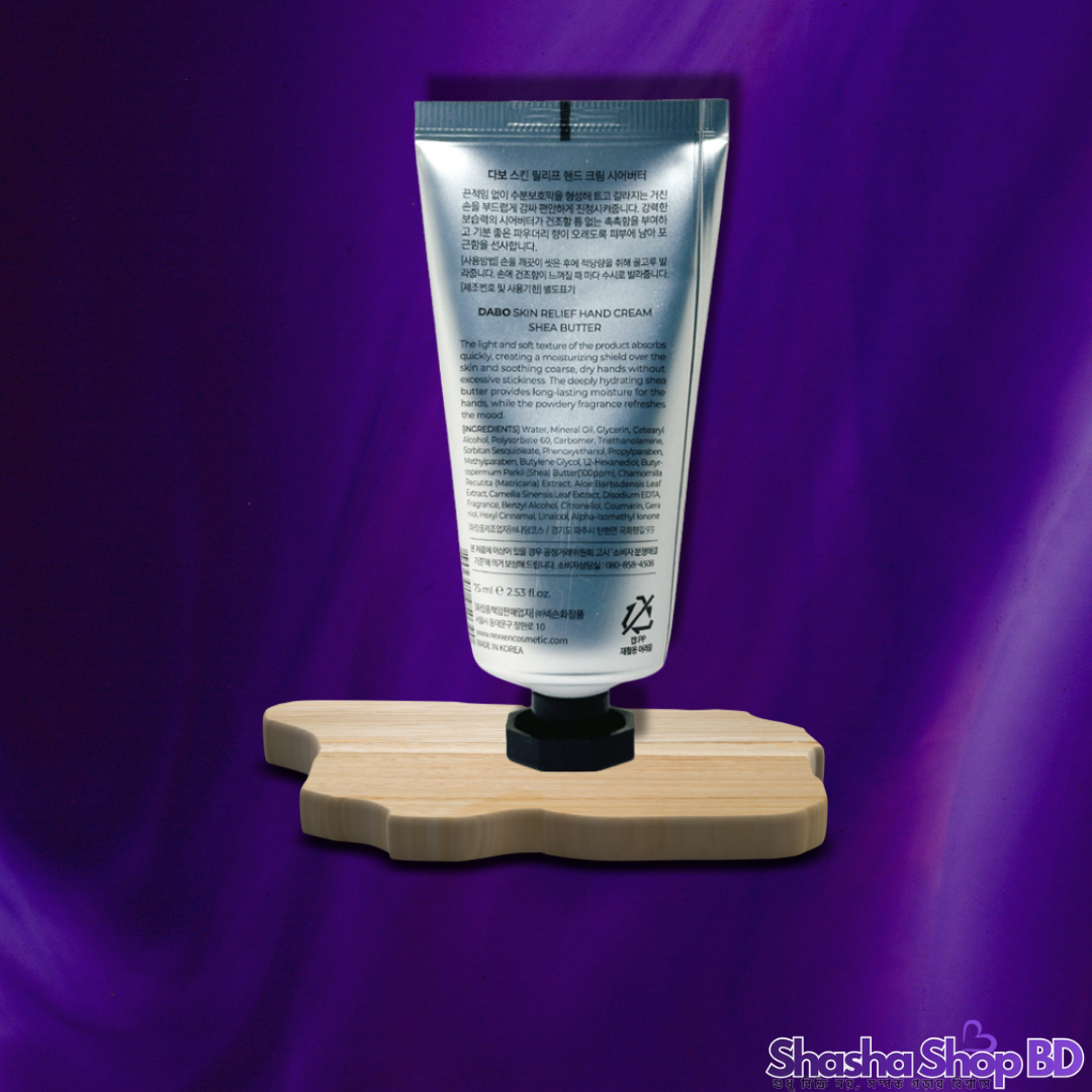 ✨ আপনার হাতকে মখমলের মতো কোমল এবং সুন্দর রাখতে আজই Shasha Shop BD থেকে সংগ্রহ করুন ১০০% অরিজিনাল Dabo Skin Relief Hand Cream – Shea Butter (75ml)