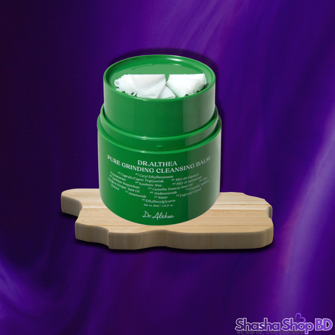 ✨ আপনার ডেইলি ক্লিনজিং রুটিনকে আরও আধুনিক ও স্বাস্থ্যকর করতে আজই Shasha Shop BD থেকে অর্ডার করুন ১০০% অরিজিনাল Dr. Althea Pure Grinding Cleansing Balm (50ml)