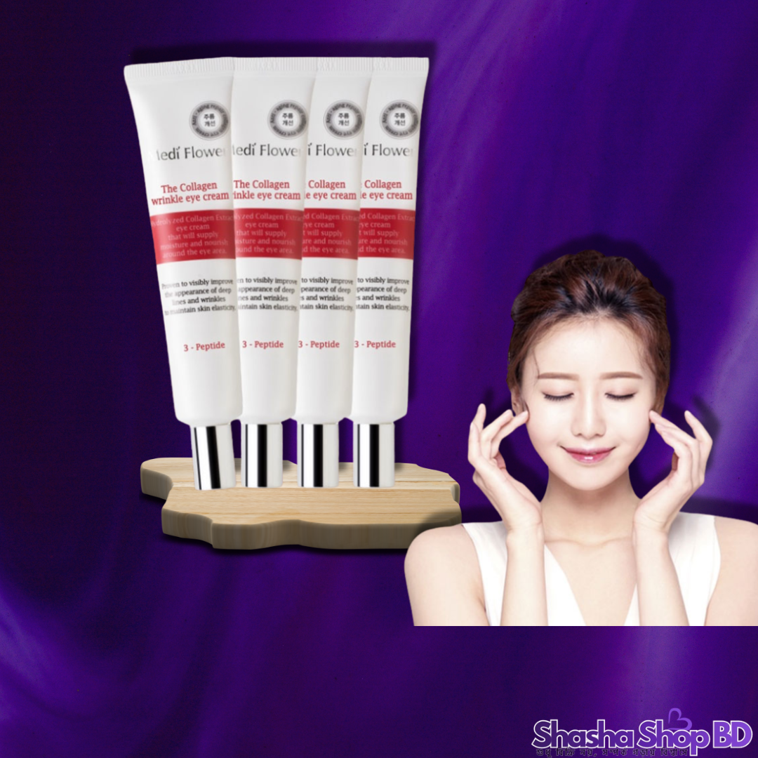 ✨ আপনার চোখের তারুণ্য ধরে রাখতে এবং ক্লান্তভাব দূর করতে আজই Shasha Shop BD থেকে অর্ডার করুন ১০০% অরিজিনাল Medi Flower The Collagen Wrinkle Eye Cream (40ml)
