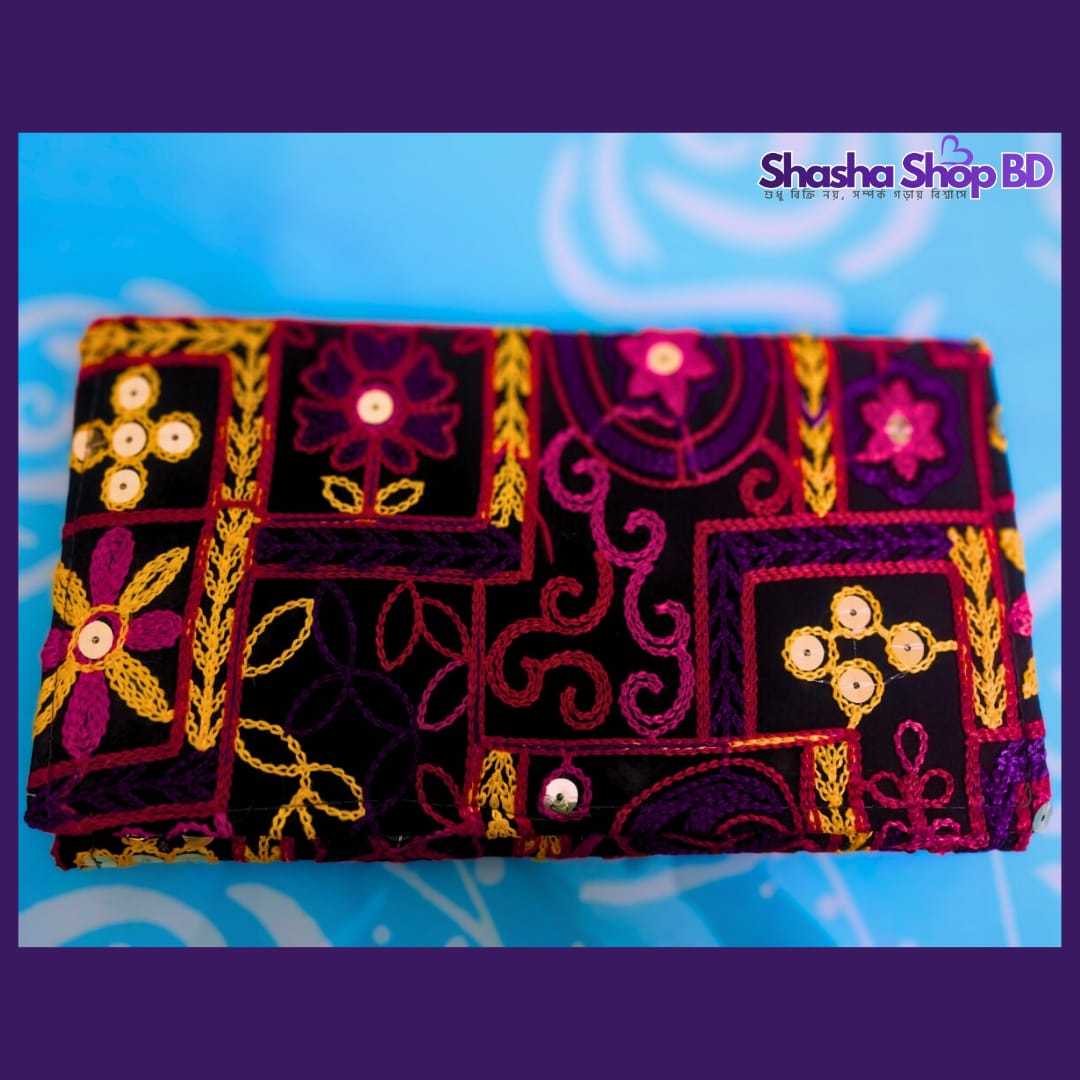 Premium Handcrafted Embroidery Clutch with Mirror Work Purse | নিখুঁত হাতের কাজের এমব্রয়ডারি এবং মিরর ওয়ার্ক পার্স ব্যাগ